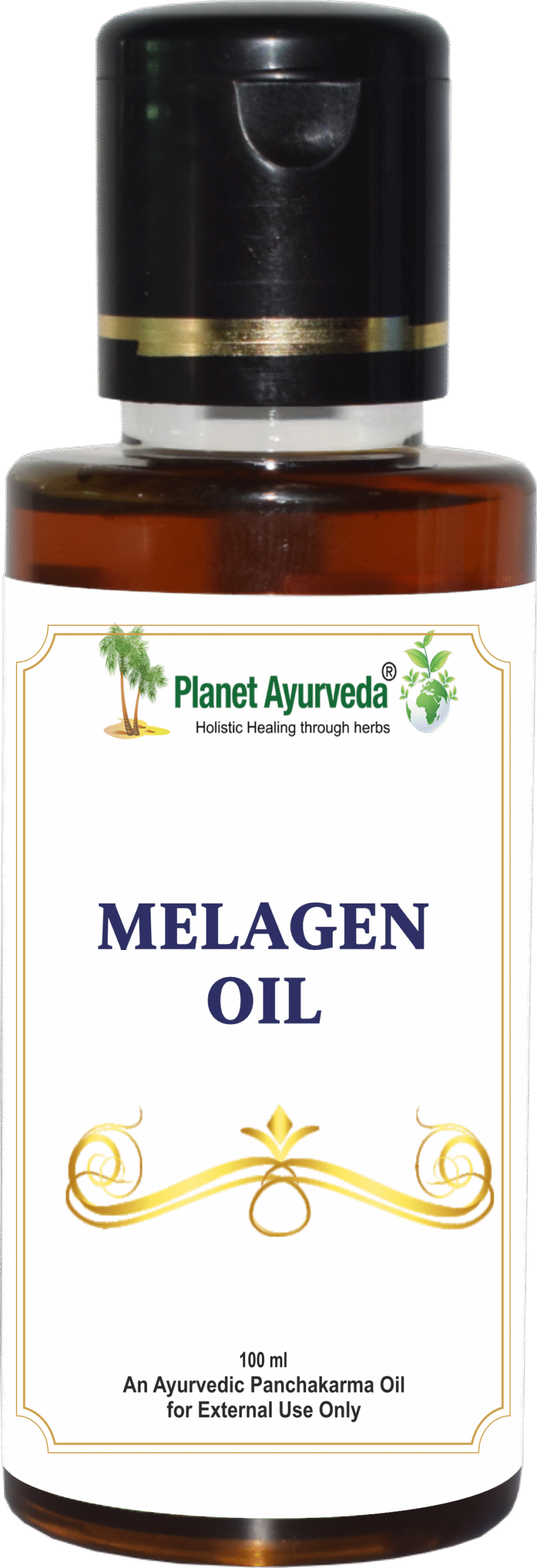 - Melagen Oil is prepared from pure oils of Stri kutaja (Wrightia tinctoria), Coconut oil (Cocos nucifera) and Bakuchi (Psoralea corylifolia).